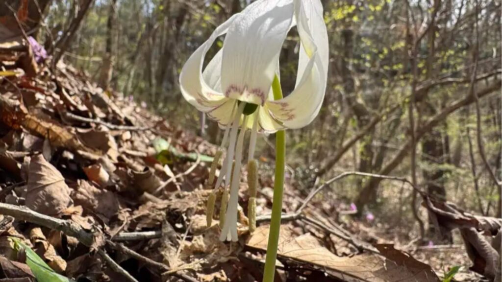 数万株に一つの確率で出会える、幻の白いカタクリを探しましょう♪