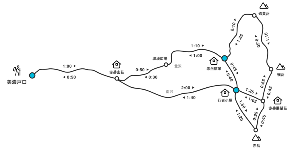 下山は同じルートをピストン、もしくは周回で赤岳鉱泉、そして美濃戸口へ戻るプラン。