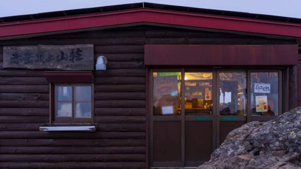 山頂付近にある山小屋。営業開始は例年夏から。山頂の日の出が、ほぼ起きてすぐ見に行けます。ピークシーズンや連休時期は予約をしておくことが望ましいです。