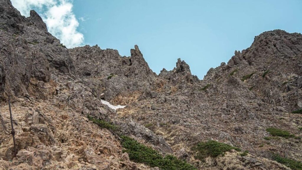 山頂直下の岩場は距離が短く、岩場が好きな人には楽しいエリア。慎重に行けば怖さはあまり感じませんでした。ですが岩場の通過や急登が多く、油断は禁物。
